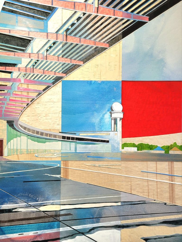 Detlef Waschkau übersetzt das vertraute Motiv vom Leben in der Großstadt in die Bildsprache des 21. Jahrhunderts und offeriert dem Betrachter ein lebendiges Bild, das die permanente Transformation bei gleichzeitig zunehmender Uniformität der Metropolen thematisiert. In der ARCHITEKTENKAMMER.NRW wird der in Berlin lebende Künstler seine Exponate an der Sichtbetonwand und im Foyer präsentieren.